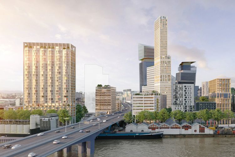 Der Stadtteil Bruneseau an der Grenze zwischen Paris und Ivry ist Gegenstand einer umfassenden Stadterneuerungsmaßnahme, die ein gemischtes Viertel mit Wohnungen, Geschäften, Büros und Dienstleistungen schaffen soll. © Bruneseau