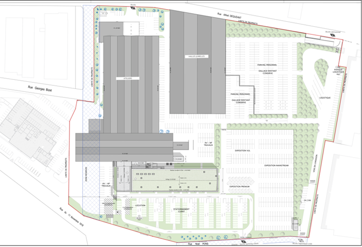 - 38 000 m² d’espaces extérieurs dédiés aux parkings véhicules.