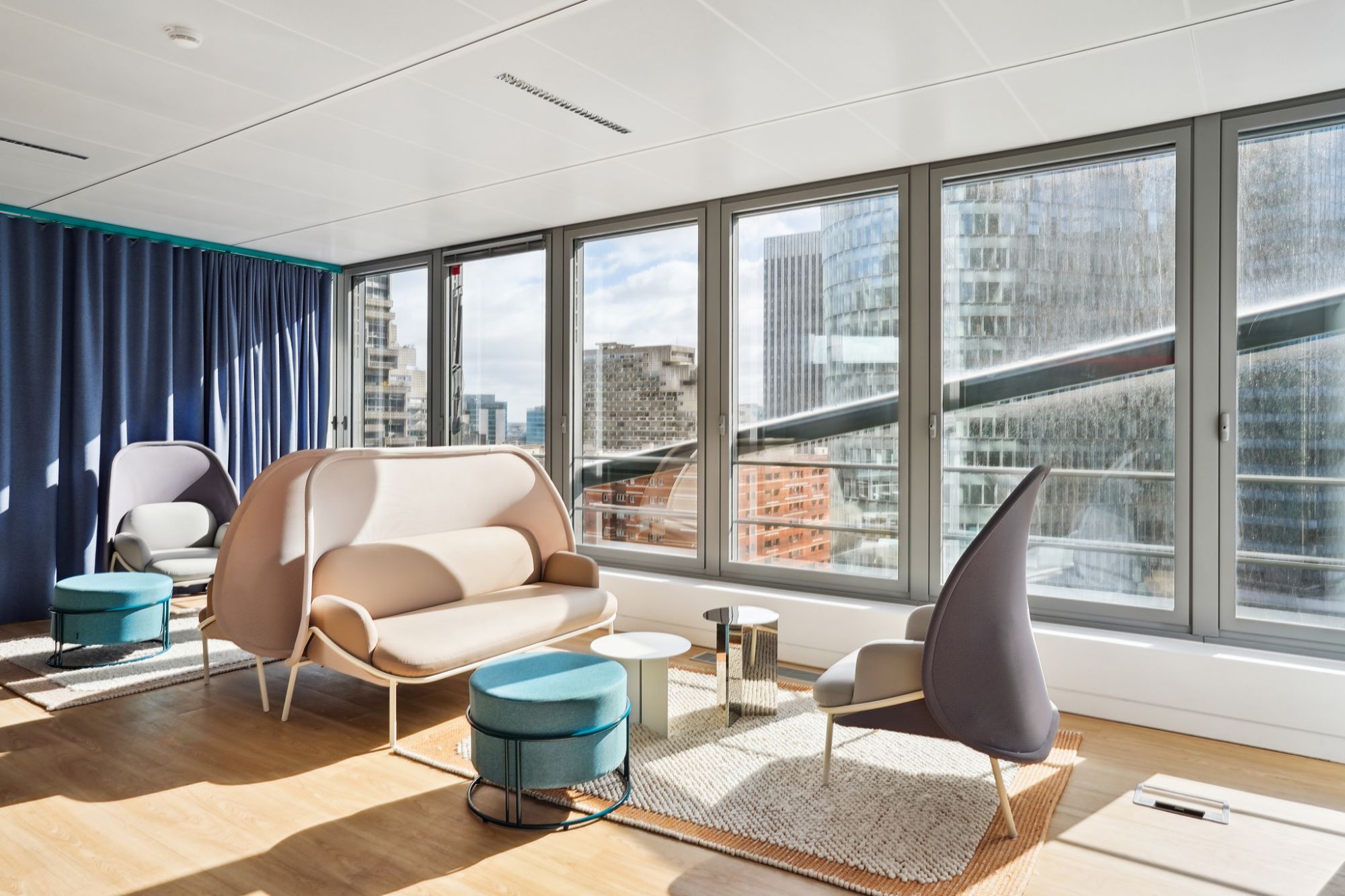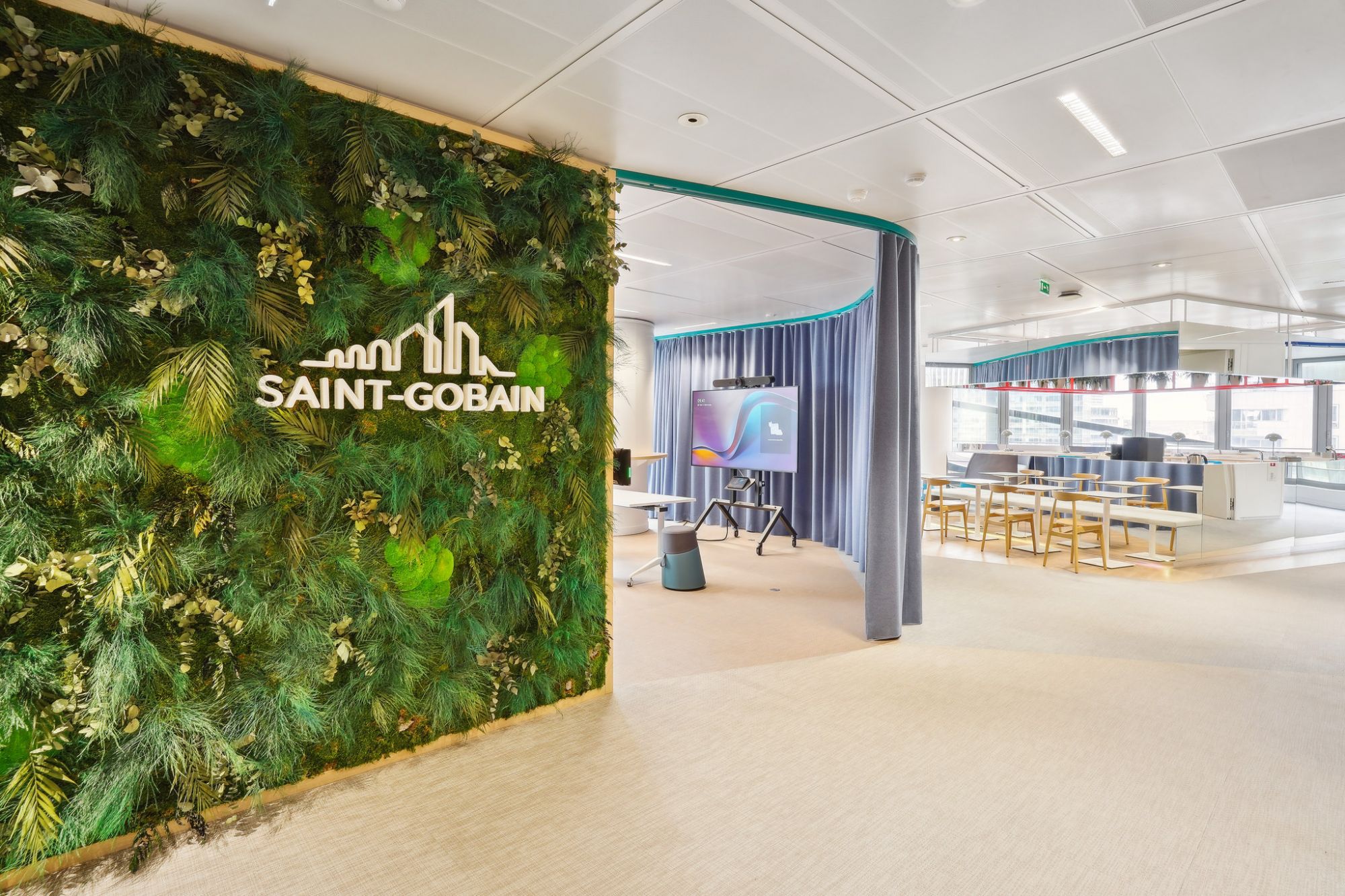Après avoir aménagé les espaces de travail du siège livrés en 2020, nous avons accompagné le groupe Saint Gobain dans l’élaboration d'un nouvel espace collaboratif mixte situé au 5ème étage de la tour.